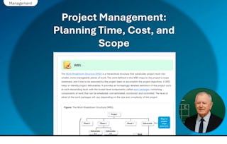 Scope, time, and cost management are at the heart of successful project management. This course will give you the tools to develop a project scope, schedule and budget and then status them to predict project performance. Throughout the course, you will learn about change management and techniques to implement it.